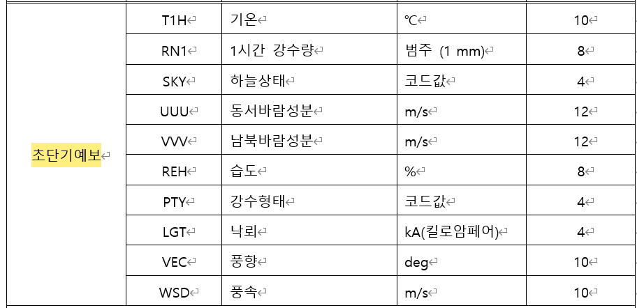 기상청에서 제공하는 API 서비스에는 초단기실황, 초단기예보, 단기예보, 예보버전 총 4가지가 있습니다.