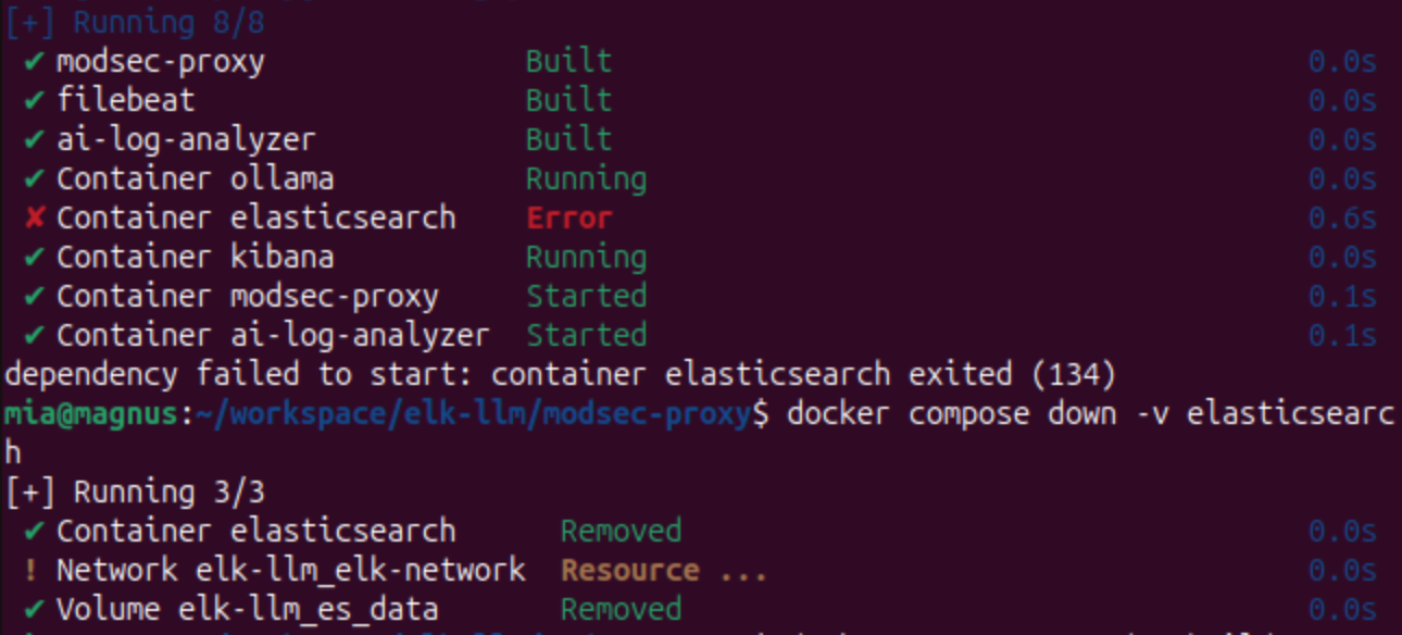 Error response from daemon: error while removing network: network elk-llm_elk-network has active endpoints (ollama, kibana)