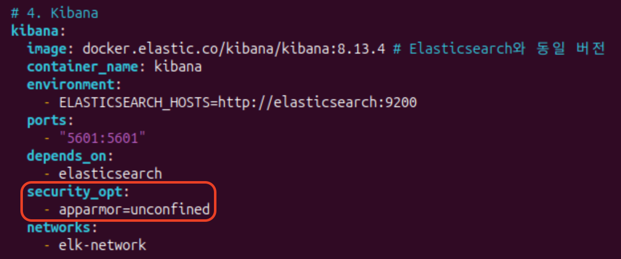 security_opt 항목은 Docker가 --security-opt 플래그에 문자열 형태로 전달하기 때문에,