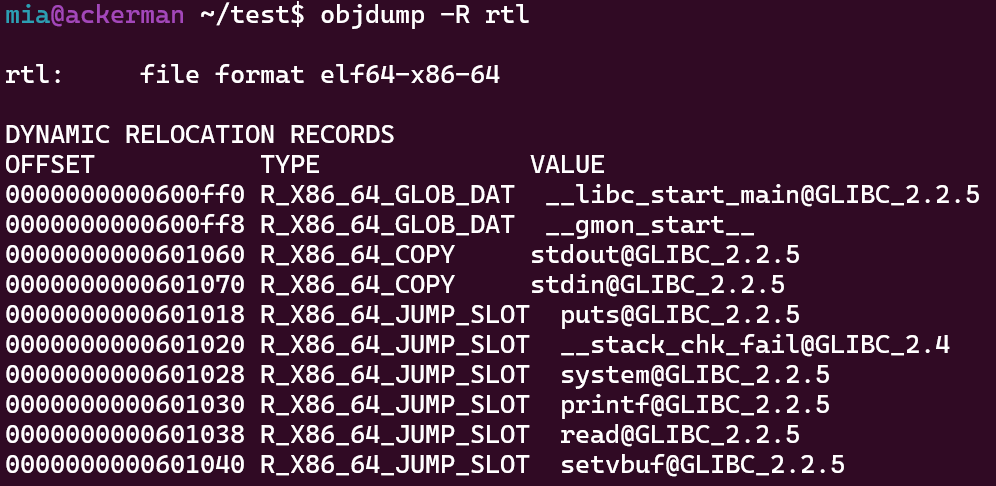 GOT 테이블 출력: objdump -R rtl