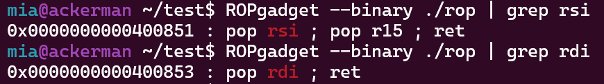 따라서 필요한 가젯은 pop rsi와 pop rdi이다.