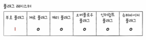 - 플래그는 연산 결과에 대한 부가 정보로(양수/음수인지, 0인지, 연산 결과가 결과를 담을 레지스터에 비해 너무 큰지), 플래그 값은 플래그 레지스터에 저장된다.