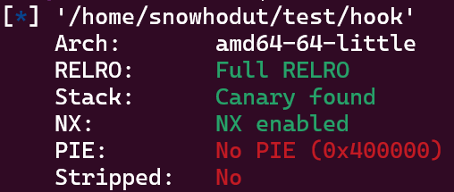 64비트, Full RELRO, 카나리 있음, NX 활성화, PIE 없음