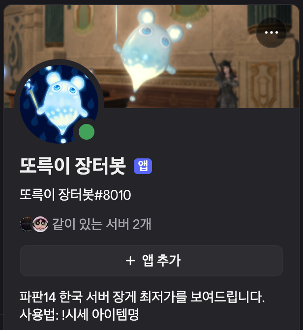 요즘 취미생활로 파판14라는 게임을 재미있게 하고 있다.이 게임에는 장터게시판이라는 시스템이 있는데, 말 그대로 유저들이 자유롭게 아이템을 사고팔 수 있는 곳이다.원래 디스코드 봇 중 아이템 이름을 검색하면 서버별 최저가를 보여주는 봇을 서버에 추가해서 잘 사용하고 있었는데, 뭔가 문제가 생긴 듯 제대로 작동하질 않았다. 다른 장게봇을 찾아봐도 마음에 드는 게 없어서 그냥 내가 만드는 게 빠르겠다! 싶어 직접 만들게 되었다. 앱 생성하기 디스코드 봇을 만들어 보자. https://discord.com/developers/applicationsDiscord for DevelopersBuild games, experiences, and integrations for millions of users on D..